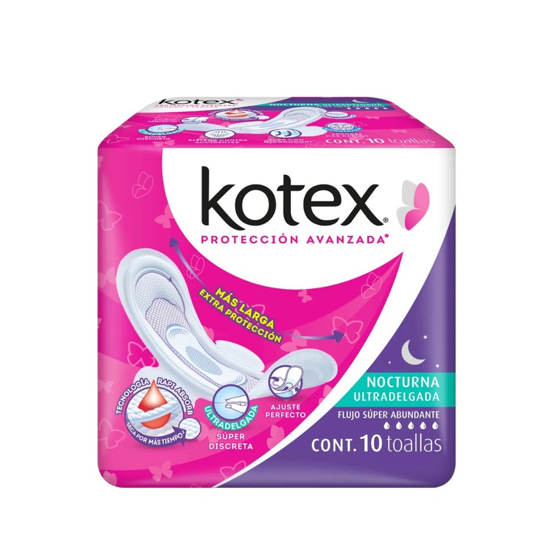 KOTEX PROTECCION AVANZADA NOCTURNA ULTRADELGADA C/ALAS C/10 TOALLAS SANITARIAS