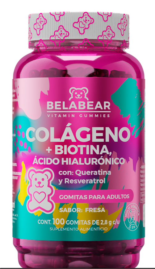 BELABEAR COLAGENO+BIOTINA. ACIDO HIALURONICO SABOR FRESA 2.8 G C/100 GOMITAS
